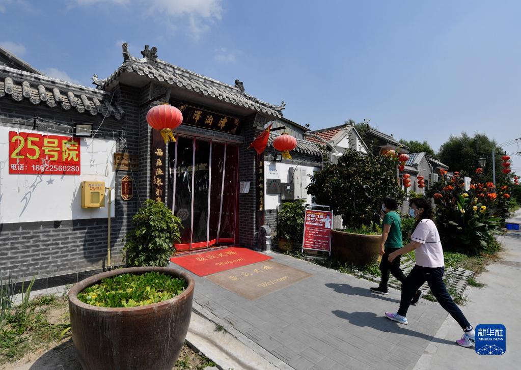 游客走進(jìn)天津市寶坻區黃莊鎮小辛碼頭村的一家農家院(9月2日攝)。新華社記者 孫凡越 攝
