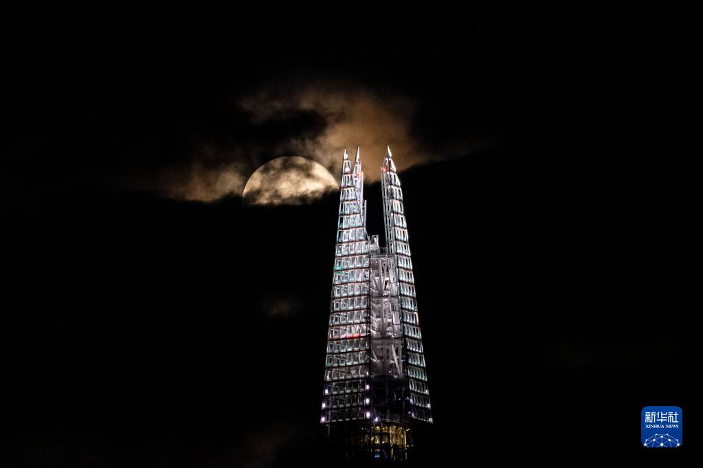 9月21日,滿(mǎn)月在英國倫敦的“碎片大廈”上空升起。