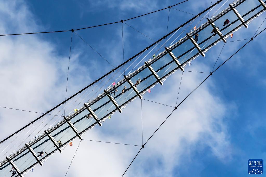 10月2日,游客在貴陽(yáng)市開(kāi)陽(yáng)縣南江大峽谷景區體驗空中天梯。