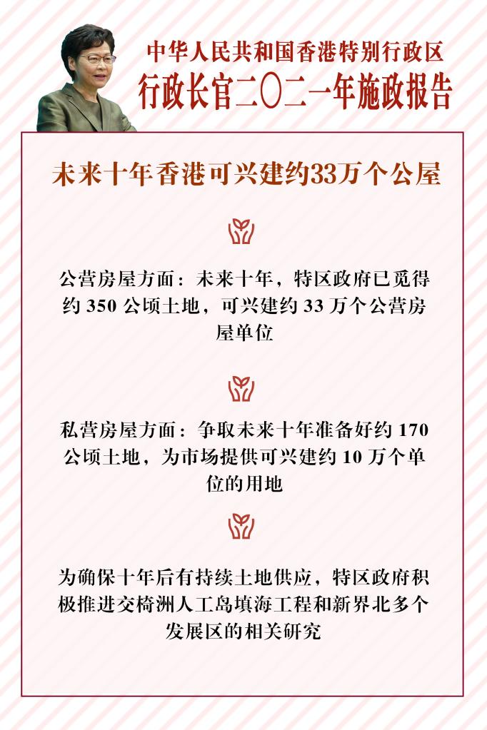香港特區行政長(cháng)官林鄭月娥:未來(lái)十年香港可興建約33萬(wàn)個(gè)公屋