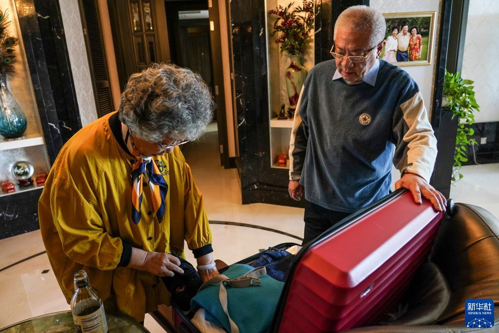 10月11日,午飯后,李戰平(左)和老伴兒呂偉業(yè)在北京的家中收拾行李準備前往河北燕郊的養老公寓。