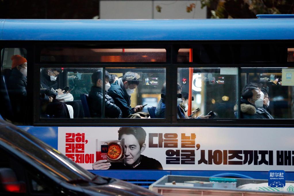 11月29日,佩戴口罩的市民在韓國首爾乘坐公交車(chē)。新華社記者 王益亮 攝