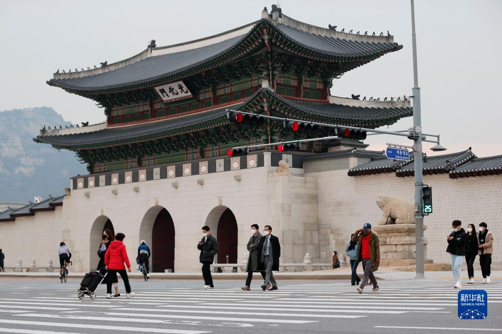 11月29日,行人佩戴口罩在韓國首爾光化門(mén)過(guò)馬路。新華社記者 王益亮 攝