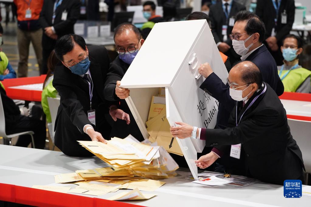 12月19日,香港特區選舉管理委員會(huì )主席馮驊(右二)打開(kāi)票箱。新華社記者 呂小煒 攝