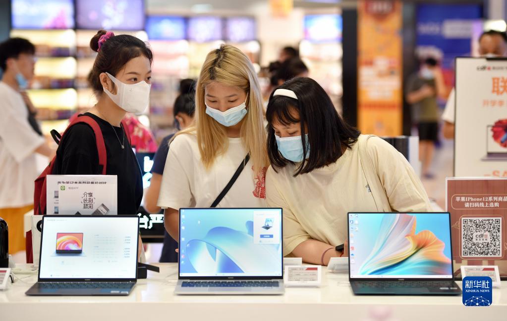 顧客在??谌赵聫V場(chǎng)免稅店購物(7月2日攝)。新華社記者 郭程 攝