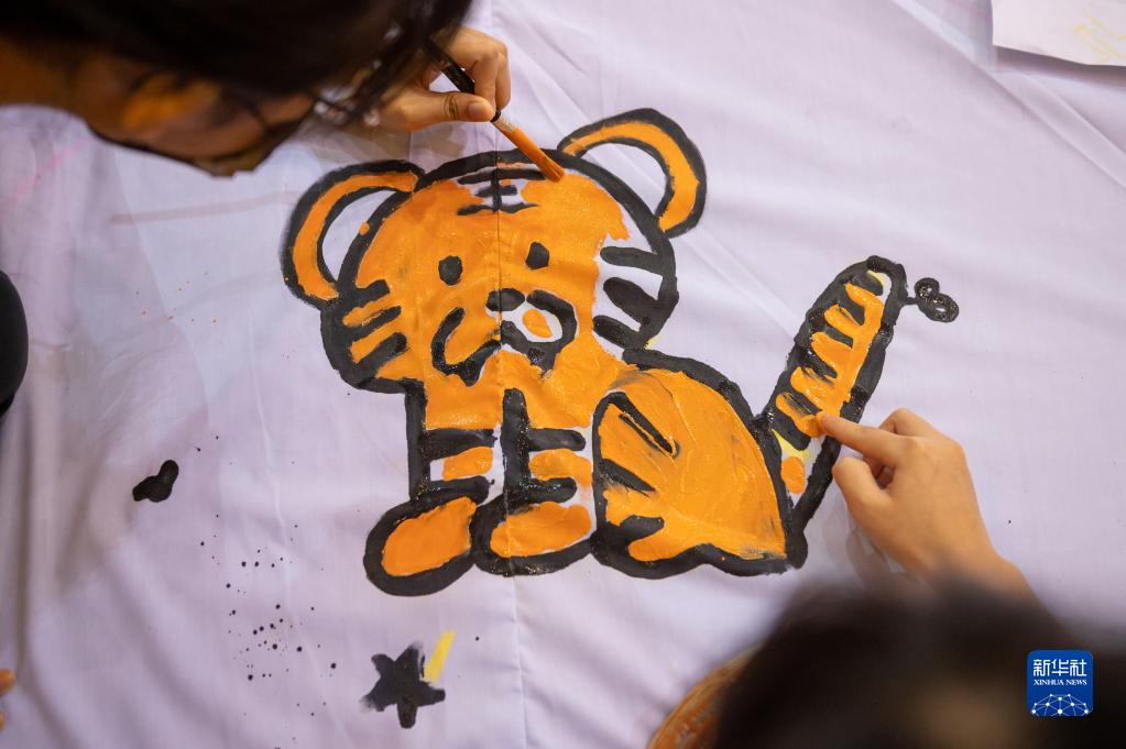12月26日,學(xué)生們在馬來(lái)西亞彭亨州文冬創(chuàng )作老虎主題年畫(huà)。