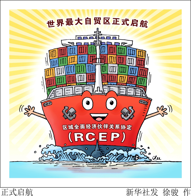 在新冠疫情和保護主義帶來(lái)的凜風(fēng)中,區域全面經(jīng)濟伙伴關(guān)系協(xié)定(RCEP)1日正式生效。作為世界上最大的自貿區,RCEP生效將對提振成員國之間貿易、繁榮區域經(jīng)濟產(chǎn)生重要影響,并在多個(gè)維度上為世界經(jīng)濟帶來(lái)寶貴暖意。