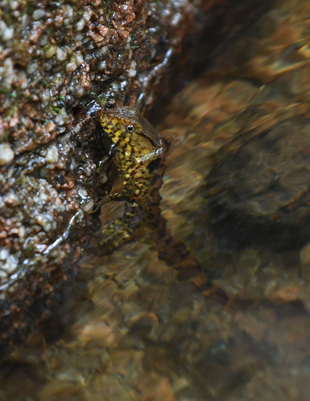 ↑2021年5月13日在廣東羅坑鱷蜥國家級自然保護區廟背沖溪溝拍攝的野生鱷蜥亞成體。