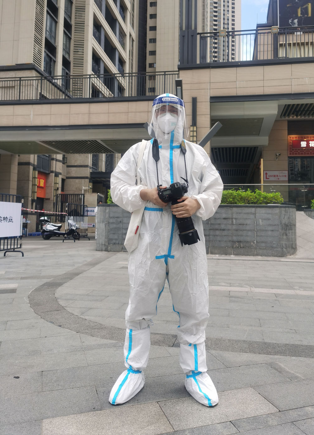 6月12日,借助物業(yè)贈送的防護服,我用口袋相機拍攝了一個(gè)行進(jìn)式的VLOG。設備是之前準備出差時(shí)用的,沒(méi)成想這時(shí)候派上了用場(chǎng)。廣州的夏天穿上防護服真是感覺(jué)悶在桑拿房里一樣,隨時(shí)都能感受到汗珠在順著(zhù)手臂和身體流淌。穿著(zhù)防護服總共約一個(gè)小時(shí),脫下后,人像是從水里撈出來(lái)一樣,上衣和短褲都完全被汗水浸透了,衣服都能擰出水來(lái)??上攵切┍仨氶L(cháng)時(shí)間穿著(zhù)防護服工作的醫務(wù)和防疫人員,他們的付出和奉獻有多大。
