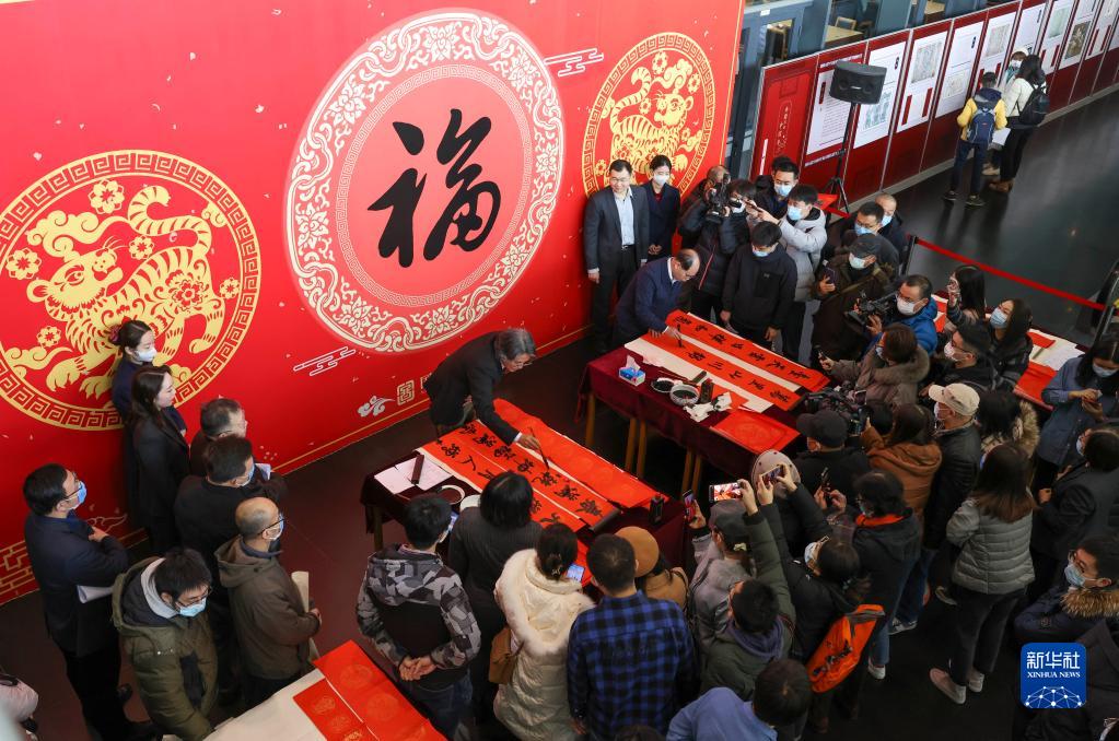 2022年1月18日,“古籍里的春聯(lián)”發(fā)布暨春聯(lián)書(shū)寫(xiě)活動(dòng)在北京國家圖書(shū)館舉行?!⌒氯A社記者 殷剛 攝