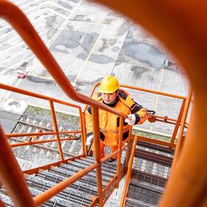 1月26日,鄭雨雙向16米高的龍門(mén)吊司機室攀爬。 新華社記者 唐奕 攝