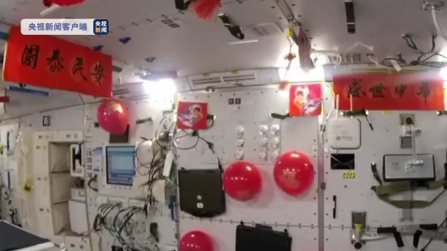天宮空間站這幾天被布置一新,透過(guò)鏡頭,我們看到,航天員翟志剛正在將福字張貼在艙壁上,航天員王亞平將一張年畫(huà)掛在了艙頂上,航天員葉光富一邊拿著(zhù)對聯(lián)、一邊調整福字的擺放,大家忙得不亦樂(lè )乎。