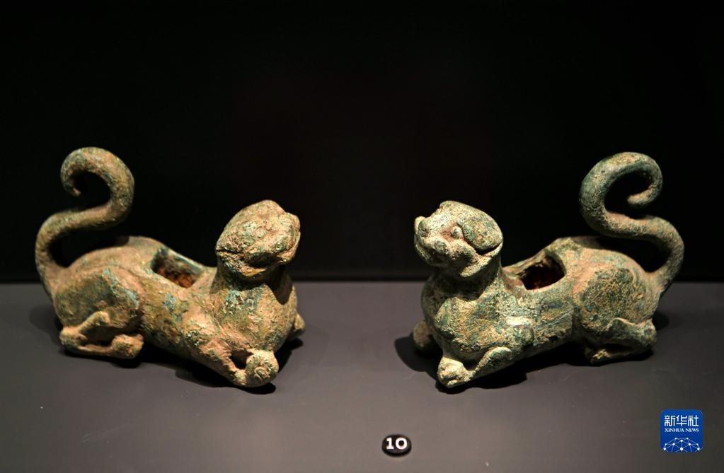 這是位于安徽省淮南市壽縣的安徽楚文化博物館展出的西漢文物“懸鼓虎形銅座”(1月13日攝)。