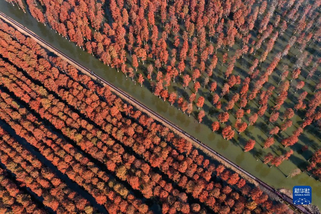 2021年12月3日拍攝的武漢漲渡湖濕地公園“水上森林”景色(無(wú)人機照片)。