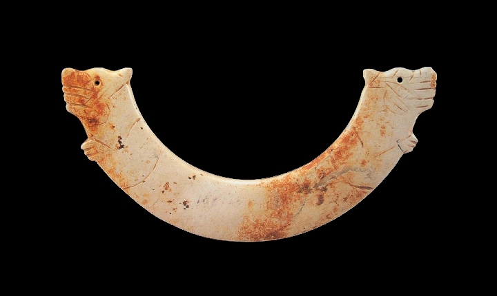 拼版照片:下圖為凌家灘遺址出土的雙連璧