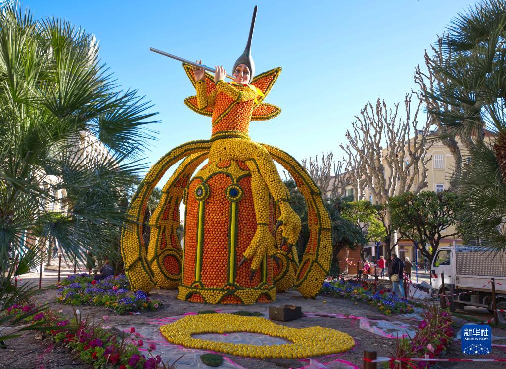 這是2月9日在法國南部小城芒通拍攝的檸檬節藝術(shù)裝置。