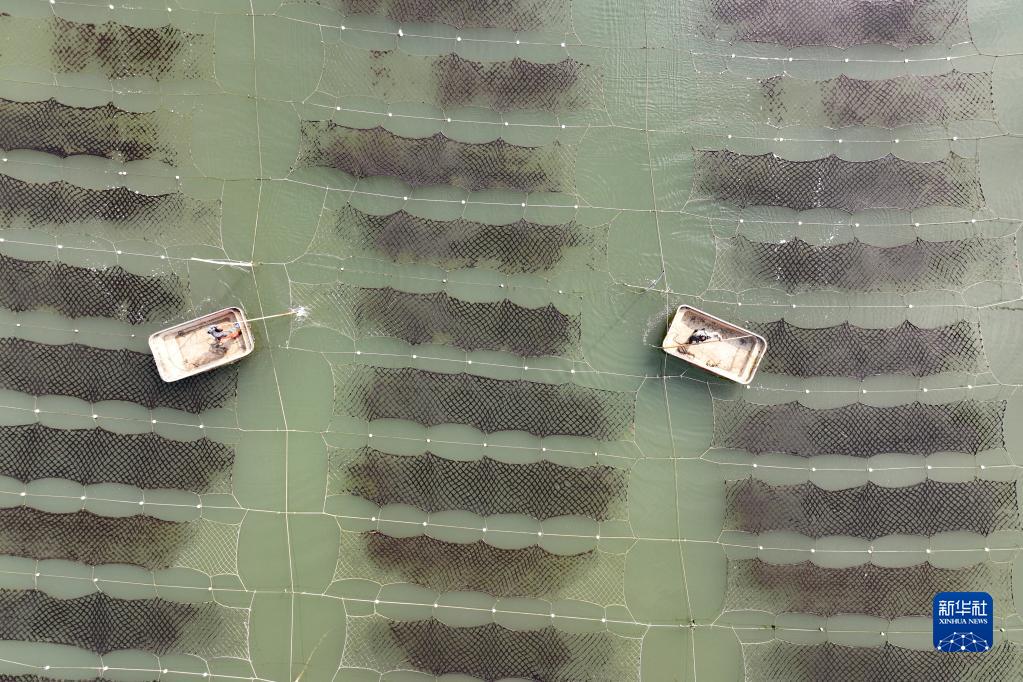 2月10日,江蘇省連云港市贛榆區沿海紫菜養殖戶(hù)在管理紫菜(無(wú)人機拍攝)。