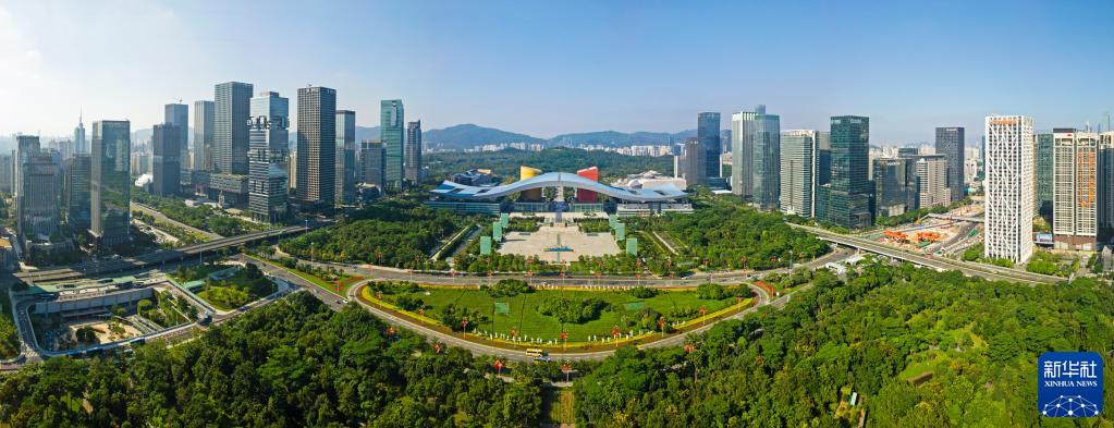 這是深圳市民中心和蓮花山公園一線(xiàn)(2020年10月2日攝,無(wú)人機照片)。新華社記者 梁旭 攝