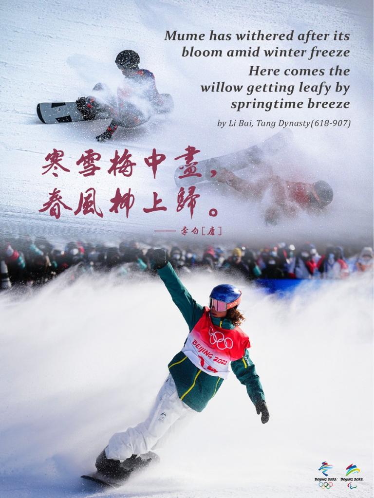北京冬奧會(huì )精彩紛呈,中國代表團捷報頻傳。假如中國的古人穿越到今天現場(chǎng)觀(guān)看比賽,他們會(huì )怎樣形容冬奧健兒的精彩表現呢?新華社徐澤宇工作室面向海外受眾制作了“當中華優(yōu)秀傳統文化遇見(jiàn)冬奧”中英文系列海報,用中國古人的精妙詩(shī)句“點(diǎn)評”運動(dòng)員的颯爽英姿。系列海報在海外社交平臺總瀏覽量超過(guò)1000萬(wàn)次,被眾多大V轉發(fā)和點(diǎn)贊,使海外受眾贊嘆中華優(yōu)秀傳統文化的博大精深,感受奧林匹克精神與“中國式浪漫”在冰雪運動(dòng)中的激情碰撞。