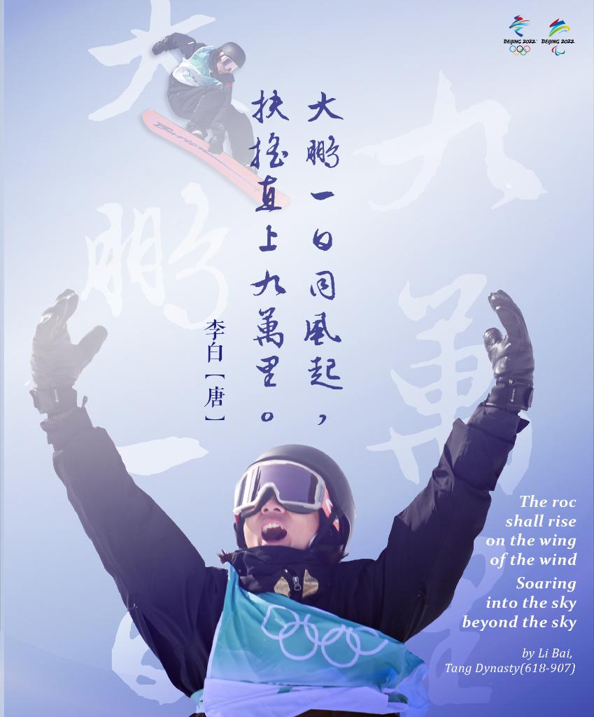 中國隊選手谷愛(ài)凌奪取自由式滑雪大跳臺項目的冬奧會(huì )歷史首金,也是中國女子雪上項目在冬奧會(huì )上獲得的首枚金牌。李白不禁要感嘆年輕選手的銳氣與活力:“桂枝日已綠,拂雪凌云端?!?/font>