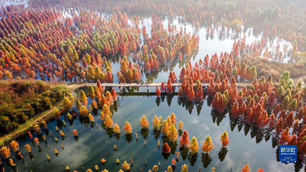 2021年12月10日拍攝的云南省昆明市的甸尾村水杉濕地一景(無(wú)人機照片)。新華社記者 胡超 攝