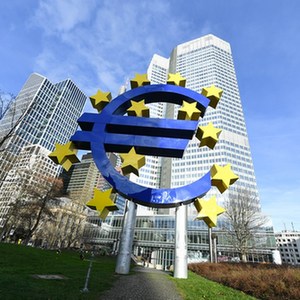 這是2021年12月30日在德國法蘭克福拍攝的歐元雕塑。新華社記者逯陽(yáng)攝