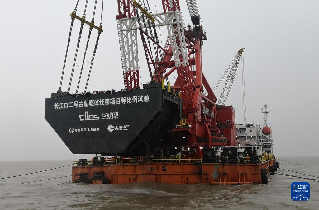 1月26日拍攝的“長(cháng)江口二號”古船整體遷移項目等比例試驗現場(chǎng)。新華社發(fā)(上海市文物局供圖)