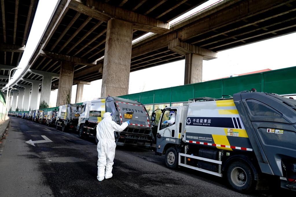 圖為3月23日,上海閔行區吳涇環(huán)衛公司垃圾清運車(chē)排隊前往隔離垃圾處置場(chǎng)。上海對封控場(chǎng)所內的垃圾“日產(chǎn)日清”。新華社記者 張建松 攝