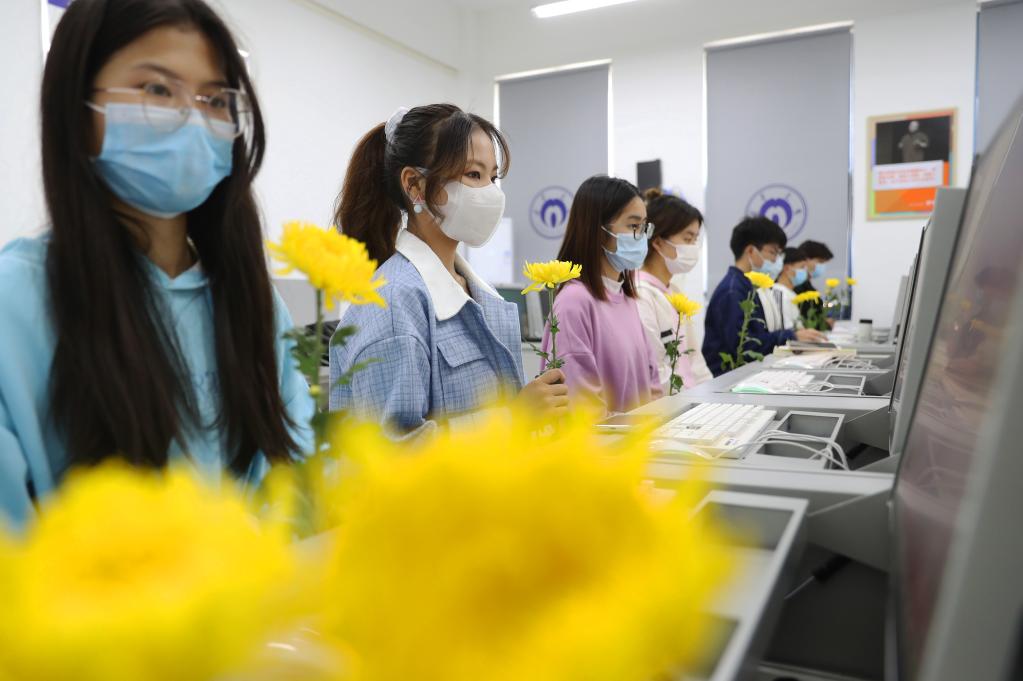 在湖南省衡陽(yáng)市,南華大學(xué)的同學(xué)們參加網(wǎng)上祭英烈活動(dòng)。新華社發(fā)(曹正平攝)