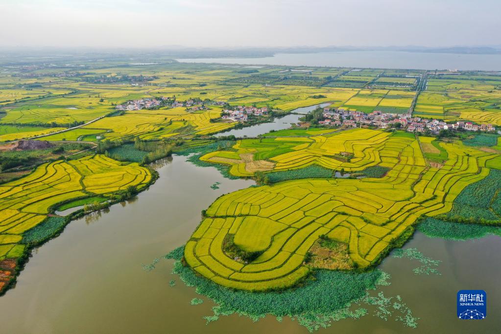 9月9日在湖北武漢江夏區法泗鎮拍攝的進(jìn)入成熟期的稻田(無(wú)人機照片)。