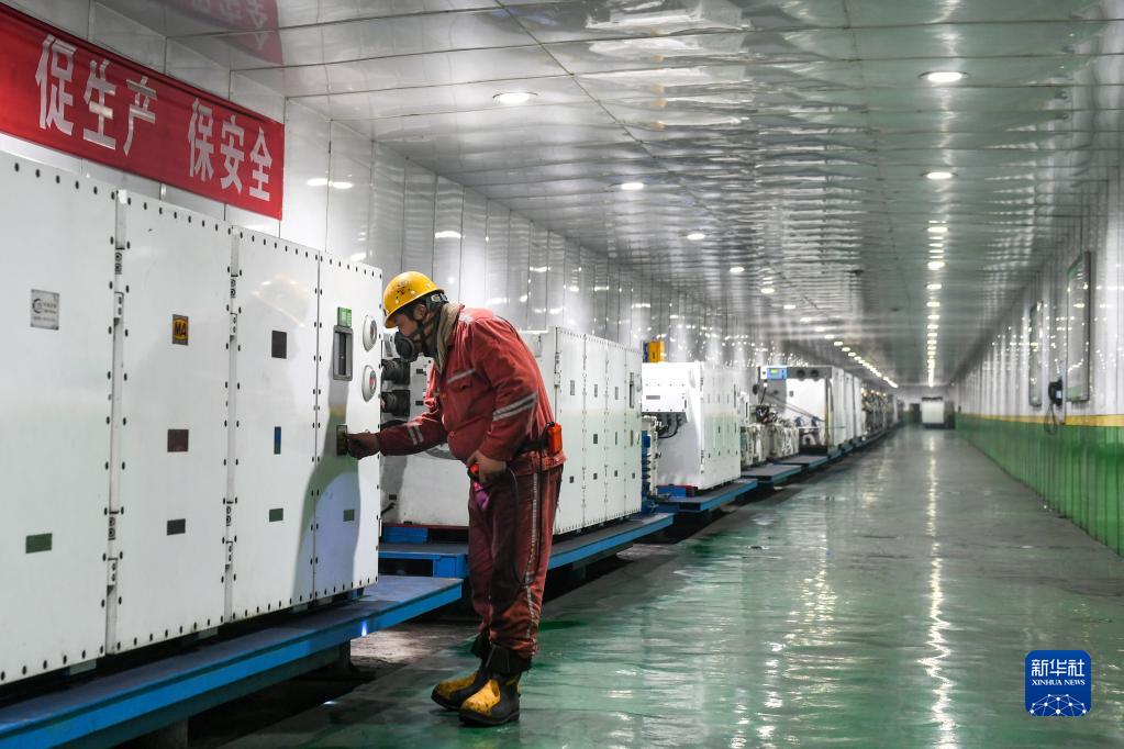 工人在龍王溝煤礦礦井下檢查智能泵站設備運行情況(9月20日攝)。