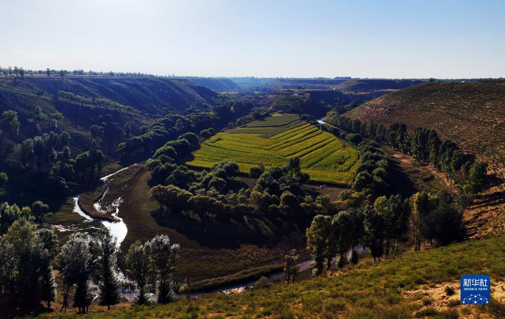 秋日,黃河一級支流無(wú)定河流域的水稻、玉米等莊稼即將成熟,美景如畫(huà)。