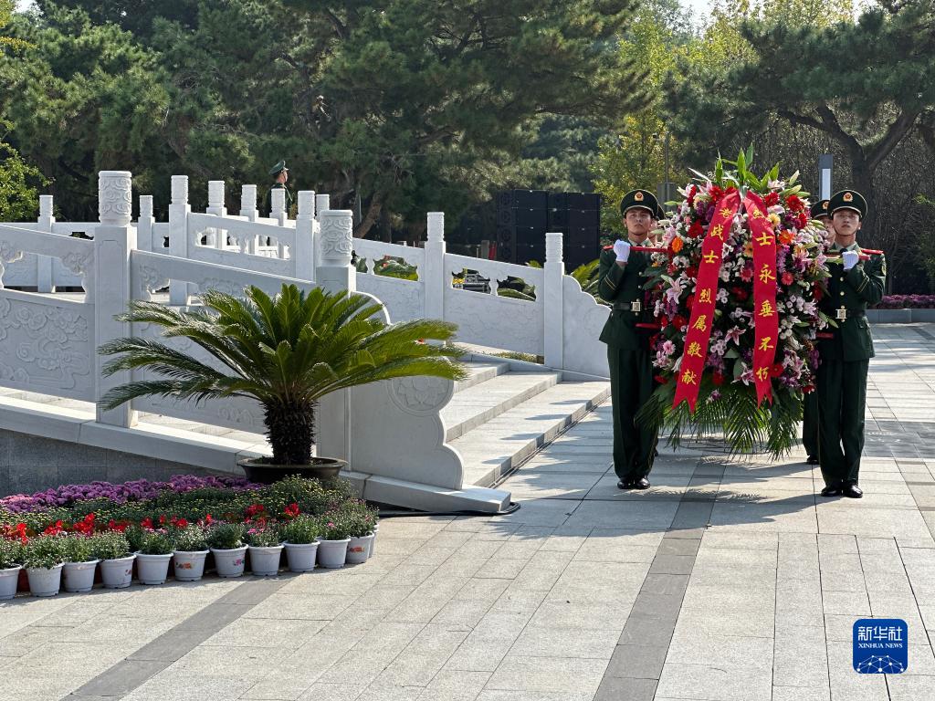 9月30日,遼寧省暨沈陽(yáng)市向烈士紀念碑敬獻花籃儀式在沈陽(yáng)抗美援朝烈士陵園紀念碑廣場(chǎng)舉行。新華社記者 李昂 攝