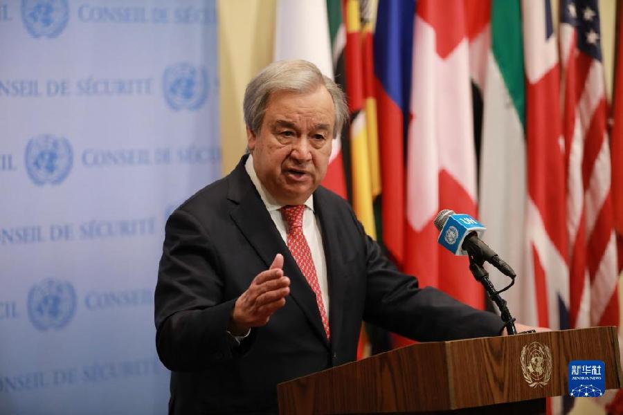 2月9日,在位于紐約的聯(lián)合國總部,聯(lián)合國秘書(shū)長(cháng)古特雷斯發(fā)表講話(huà)。新華社記者 謝鍔 攝