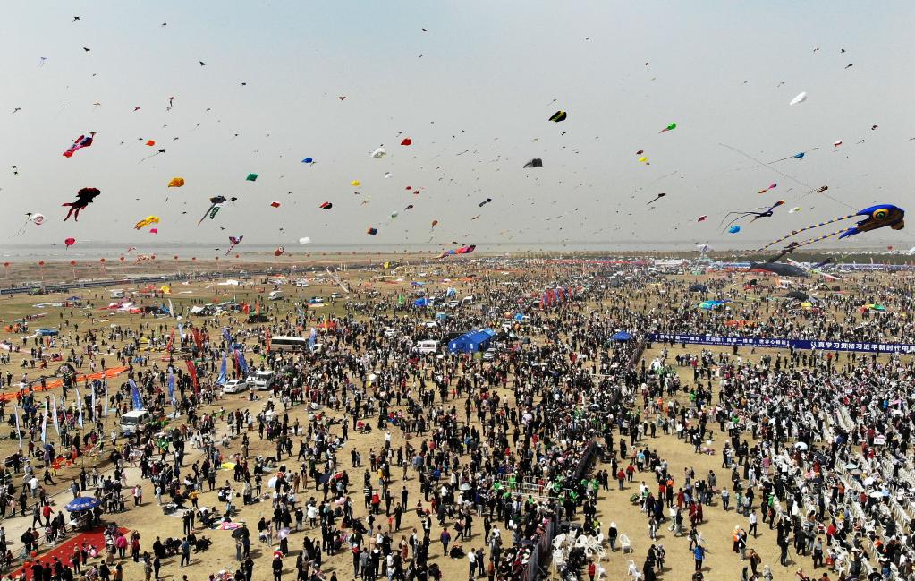4月的山東濰坊濱海,東風(fēng)勁吹,天空中飛滿(mǎn)姿態(tài)萬(wàn)千的風(fēng)箏,或孤蝶獨舞,或鶯燕雙飛,時(shí)而扶搖直上,時(shí)而騰挪翻飛,把天空點(diǎn)染成一幅“風(fēng)箏鬧春圖”。