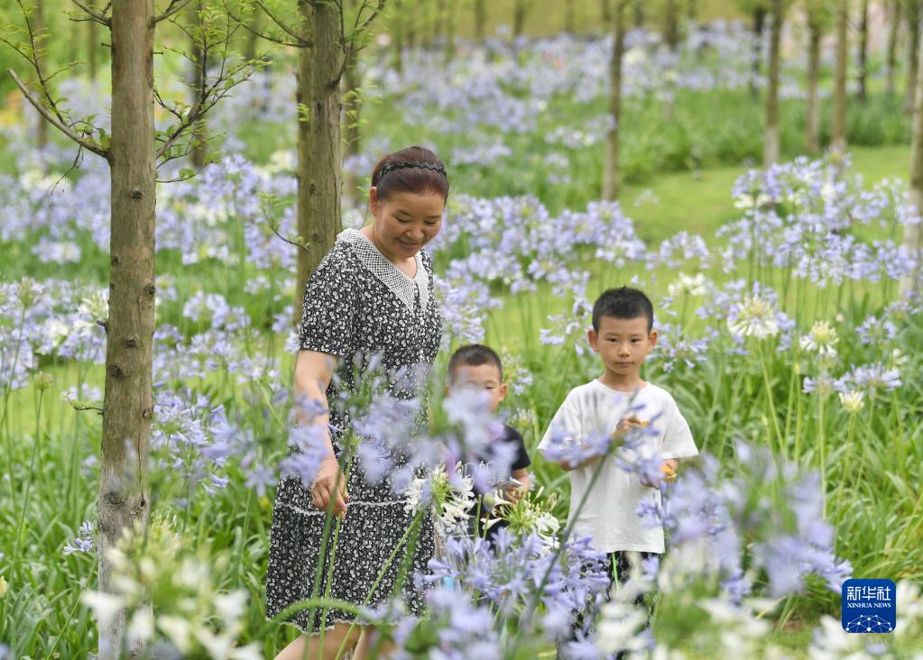 6月1日,瀘州市民在漁子溪濕地公園內游玩。