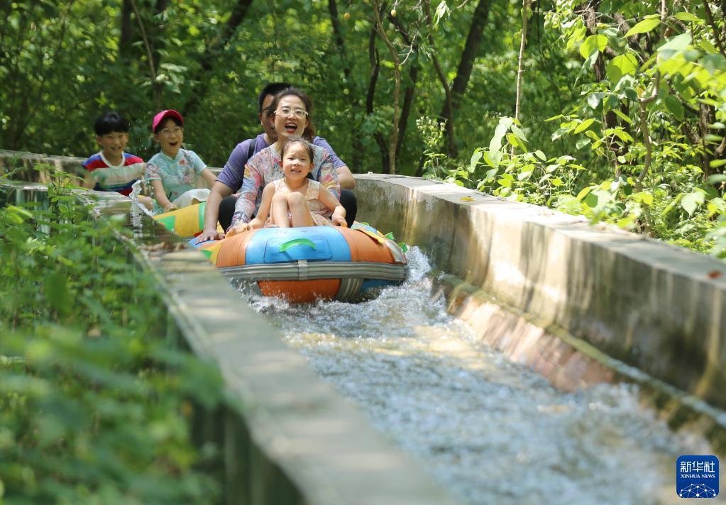 6月23日,游客在山東省沂南縣銅井鎮竹泉村體驗叢林漂流。