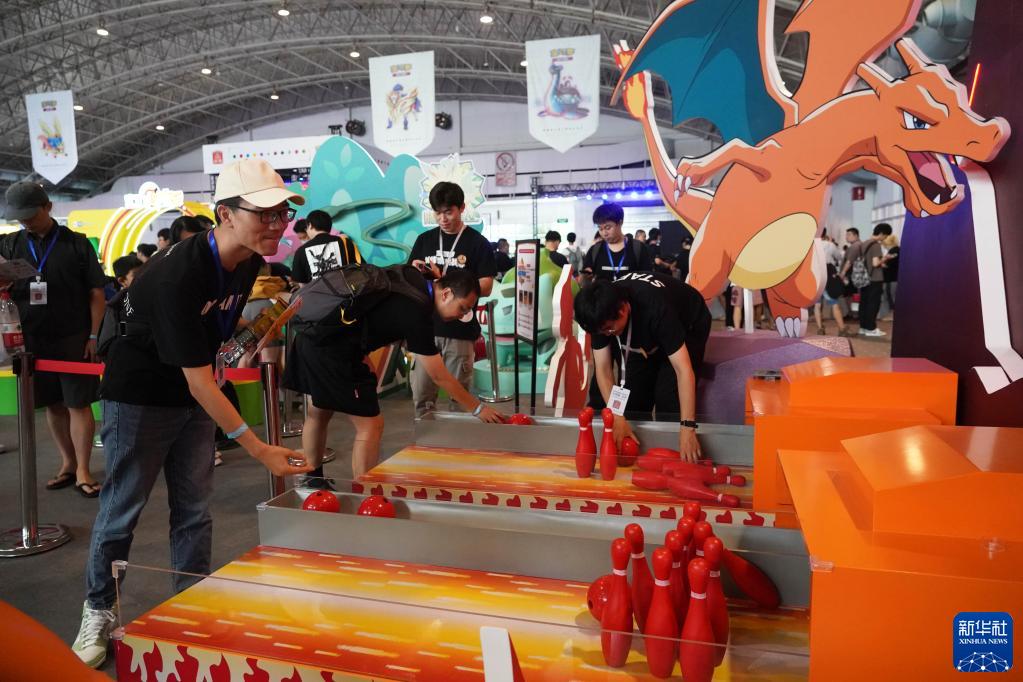 6月23日,觀(guān)眾在“2023寶可夢(mèng)集換式卡牌游戲大師賽·北京”嘉年華活動(dòng)現場(chǎng)體驗互動(dòng)游戲。