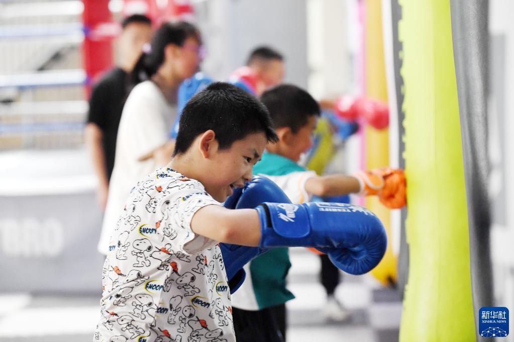 6月23日,小朋友在貴州省仁懷市體育館進(jìn)行散打基本功練習。