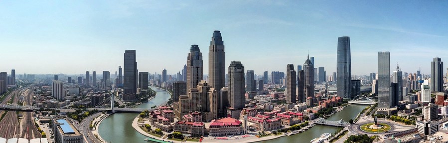 6月24日拍攝的天津海河沿線(xiàn)城市景觀(guān)(無(wú)人機照片)。新華社記者 孫凡越 攝