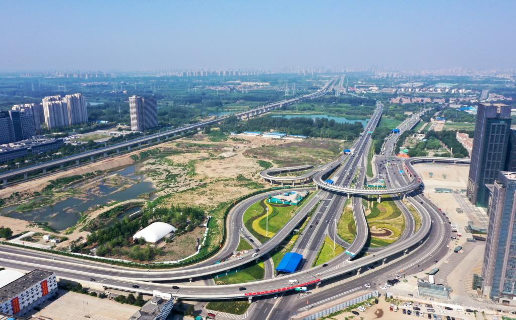 京唐城際鐵路(燕郊段)及改造后的通燕高速燕郊出口立交樞紐。(受訪(fǎng)者供圖)