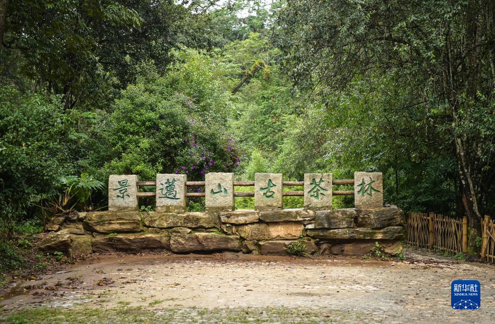 在景邁大寨古茶林入口處矗立有“景邁山古茶林”字樣的標識(8月29日攝)。新華社記者 李賀 攝