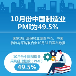 新華社北京10月31日電(記者魏玉坤)國家統計局服務(wù)業(yè)調查中心、中國物流與采購聯(lián)合會(huì )10月31日發(fā)布數據,10月份,中國制造業(yè)采購經(jīng)理指數(PMI)為49.5%,比上月下降0.7個(gè)百分點(diǎn),降至收縮區間,制造業(yè)景氣水平有所回落。