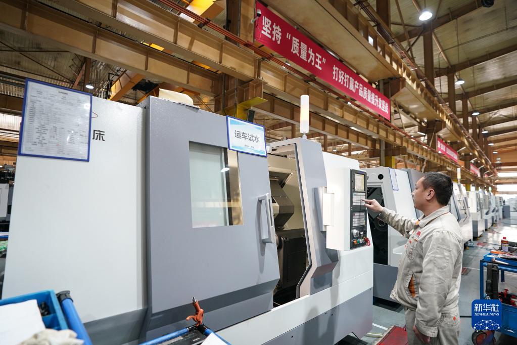 通用技術(shù)集團沈陽(yáng)機床的工人在車(chē)間工作(2月14日攝)。新華社記者 潘昱龍 攝