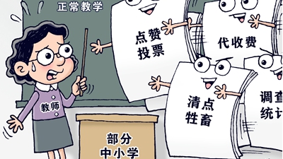 人數不夠教師來(lái)湊。主責主業(yè)成“副業(yè)”,工作負擔蹭蹭漲,讓教師苦不堪言。教師的時(shí)間都用在“副業(yè)”上了,哪還有時(shí)間教書(shū)育人?為教師減負,要減掉的正是那些教師不應承擔、與教育教學(xué)無(wú)關(guān)的事項,既要“治標”,也要“治本”。