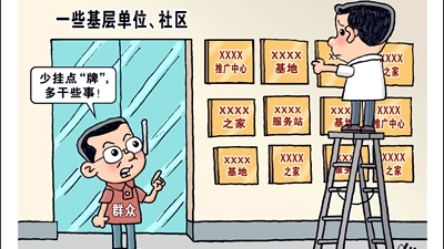 開(kāi)展達標評比、創(chuàng )建示范活動(dòng),本是以標兵引領(lǐng)推動(dòng)工作落實(shí)的有效之舉。但是一些部門(mén)卻將發(fā)牌視為“工作下沉”的象征,認為“掛牌即落實(shí)”,甚至將掛牌數量與考核排名掛鉤,大搞“繁瑣哲學(xué)”,動(dòng)輒開(kāi)發(fā)出上百項指標,以此下移壓力。部分社會(huì )組織甚至以“達標創(chuàng )建”之名創(chuàng )收牟利,造成負面影響。