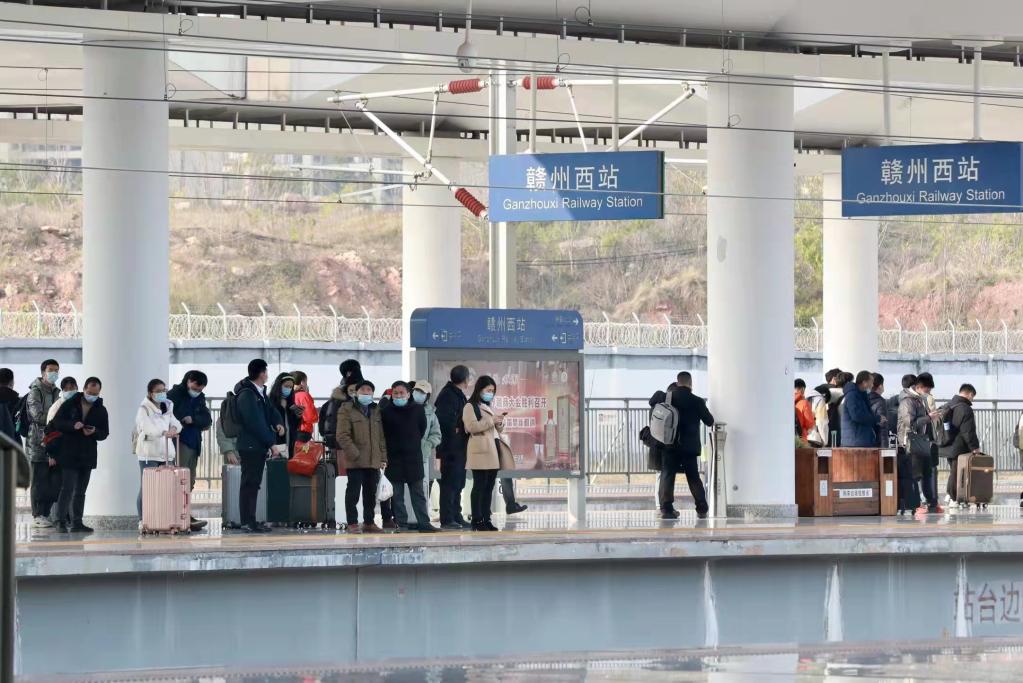 贛州西站旅客在等候上車(chē)。(圖片由受訪(fǎng)者提供)
