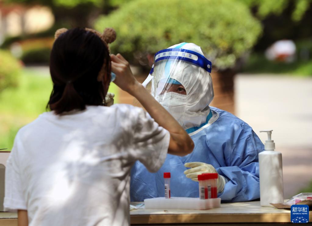 4月12日,在上海松江區一居民小區內,醫務(wù)人員進(jìn)行核酸檢測采樣。新華社記者 劉穎 攝
