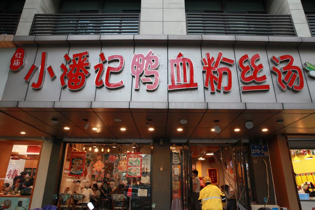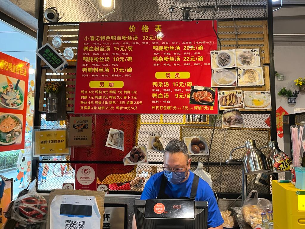 臨近中午,走進(jìn)南京市珠江路沿街的“小潘記鴨血粉絲湯”,60來(lái)平方米的店鋪里,食客三三兩兩坐著(zhù),或在品嘗美食,或在等待上餐,空座已所剩不多。門(mén)外,不時(shí)出現前來(lái)取餐的外賣(mài)小哥。