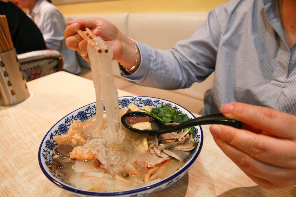 4月26日,市民在店內品嘗鴨血粉絲湯。(受訪(fǎng)者供圖)